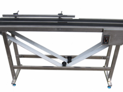 底部喷码输送机又名瓶底喷码输送机,整机是全不锈钢制造,采用具有自动测速及稳速电路的电子调速器配合优质国产电机,有较高的稳定性,输送带采用高抗静电PVC工业皮带,具有较高的防静电能力。广泛应用于药品、化妆品、食品、电子产品等各行业的输送和喷码之用,整机五根轴。把整体输送带构建成三角形状态,后把喷码头设置在底部,使得可以喷码任何特殊不能倒立的瓶子产品等。